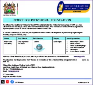 Notice for Provisional Registration -Kenya Great Party (KGP)