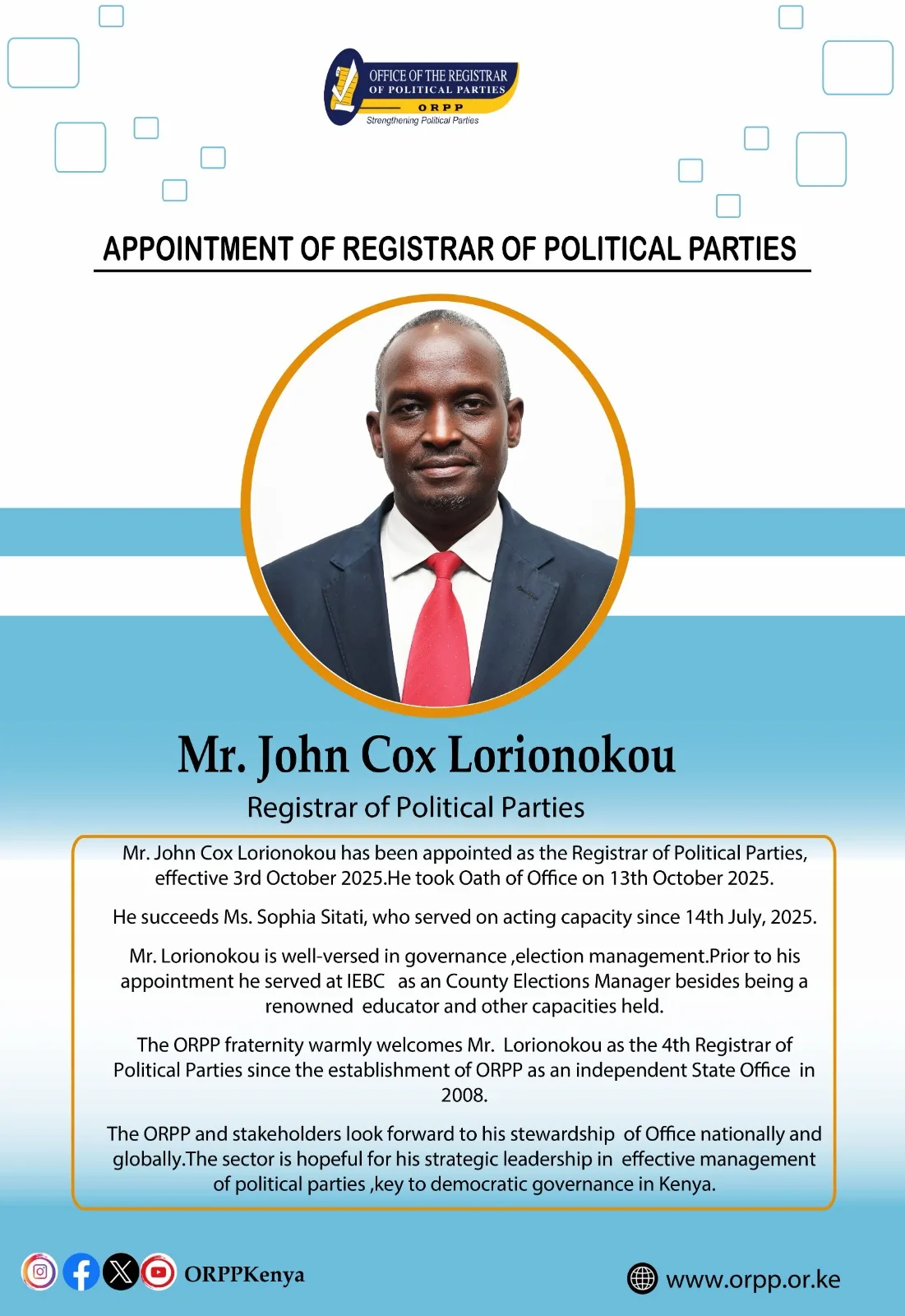 The Office of the Registrar of Political Parties (ORPP) is established by the Political …