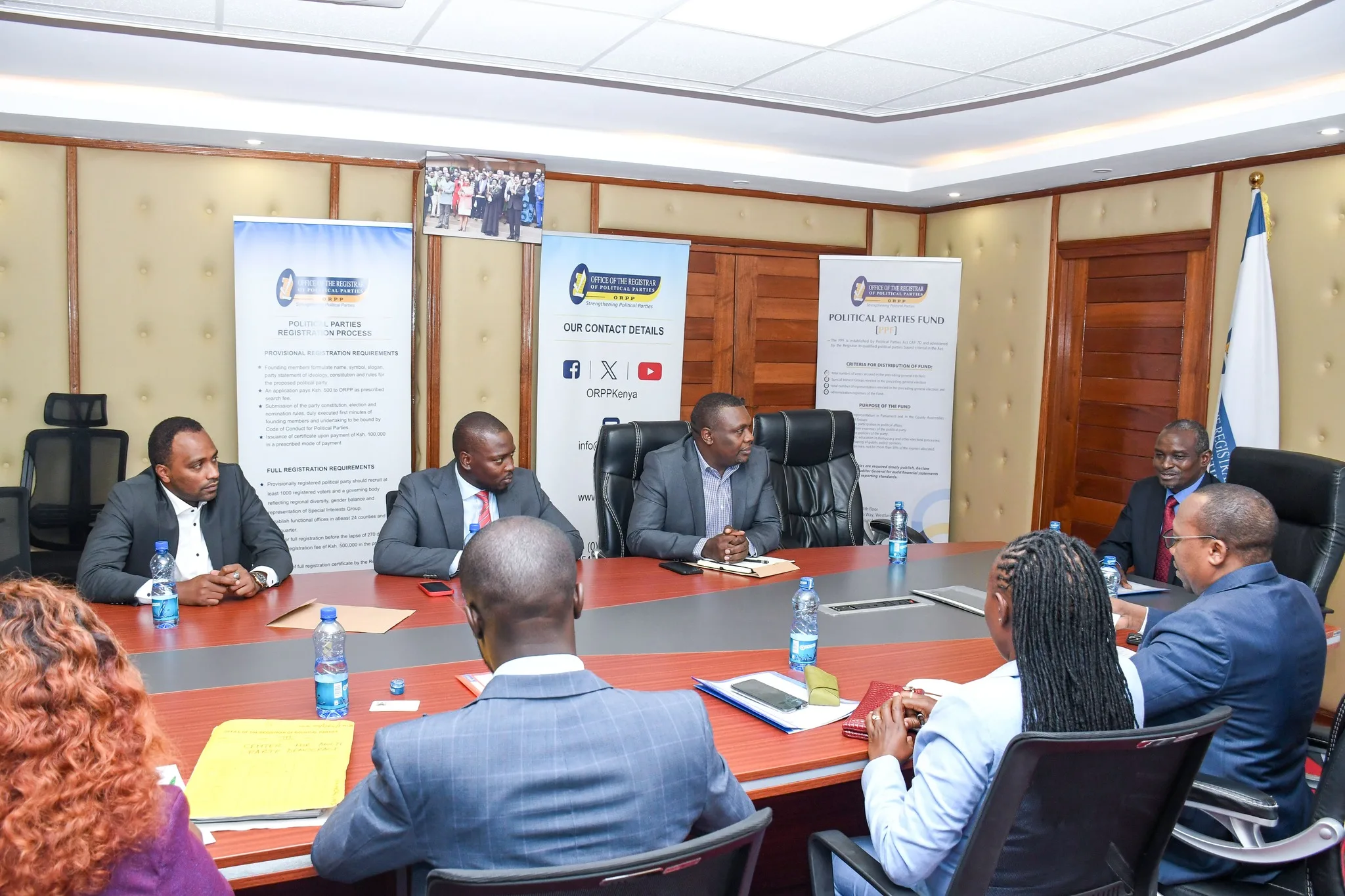 Registrar J.C.Lorionokou on 8th December 2025, held a series of discussions with ORPP cross-section of partners. Present in the discussions were Assistant Registrars Ali Abdullahi (Regulation and Compliance) and CS Agatha Wahome, Assistant Registrar -Finance, Political Parties Fund and Strategy.