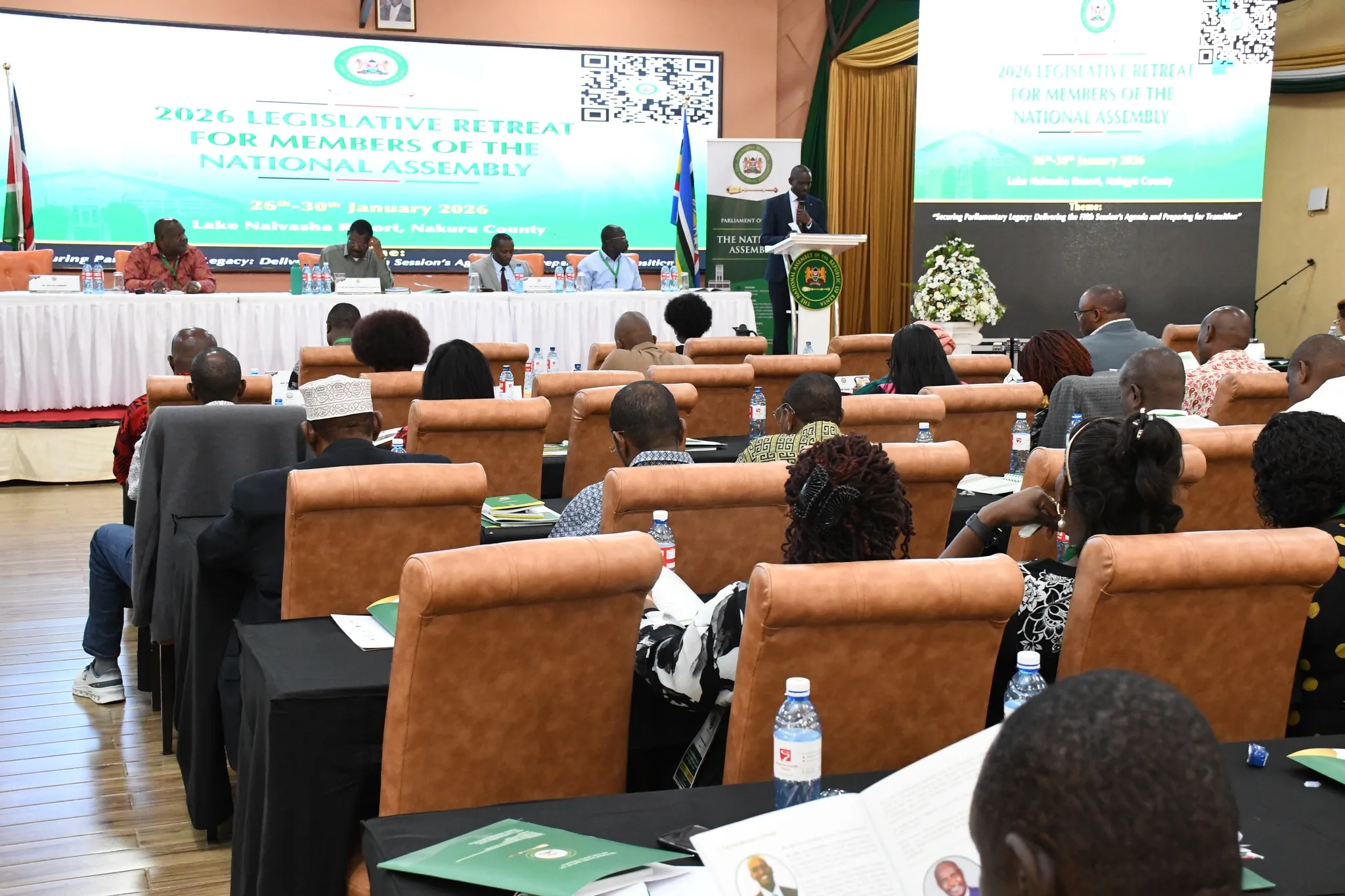 Registrar J.C. Lorionokou speaking to Full House of the National Assembly Parliament’s retreat at the Lake Naivasha lodge, on 27th January, 2026.